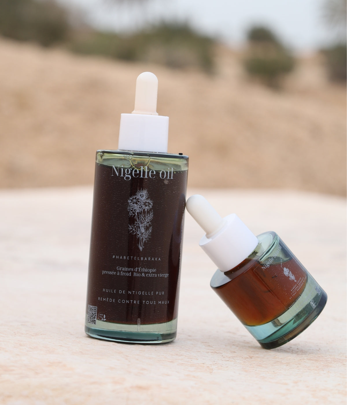 Riche en acides gras essentiels , en thymoquinone et en vitamines : elle booste votre immunité , améliore la santé de vos cheveux , hydrate et régénère votre peau, tout en offrant des propriétés anti-inflammatoires et antioxydantes pour un bien être au quotidien.